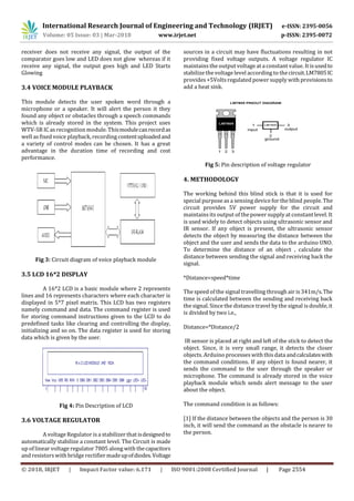 Therefore, a better device can be constructed using ultrasonic sensors, Arduino uno and other devices. 4. CONCLUSIONS Blind people face a lot of difficulties while travelling from one place to another. With the intension to help the blind, their difficulties, advance smart blind stick is proposed. If the person looses the stick the person can use an rf remote so the stick starts beeping and the person can find it. One more important feature of the system is that the system allows the blind person to send out a sms message with his/her gps location to the caretaker/relatives/loved ones of the person in case of trouble or being lost. In this project, we will build a Smart Blind Stick using the Op-Amp IC LM358 and an IR Sensor. Earlier we build a Smart Blind Stick using Arduino & Ultrasonic Sensor HC-SR04. The project worked very well. But today, we are going to do the same project without the use of any microcontroller.